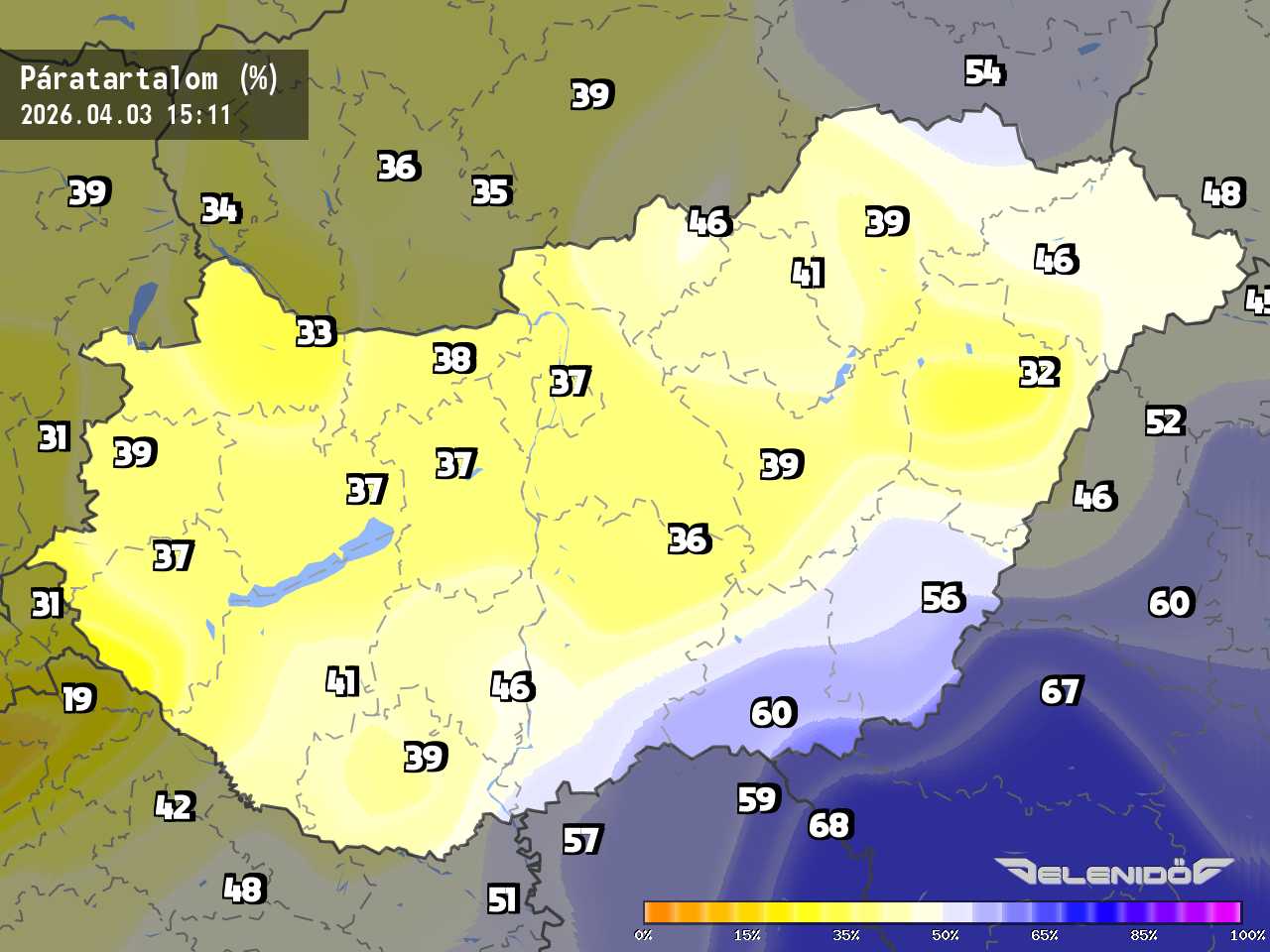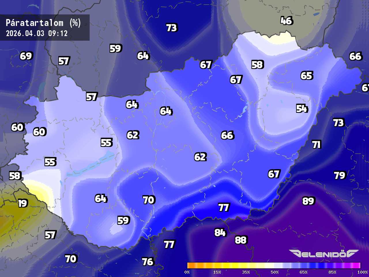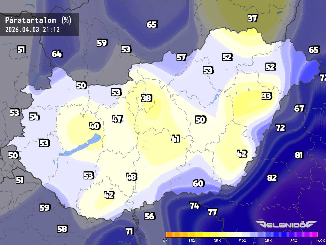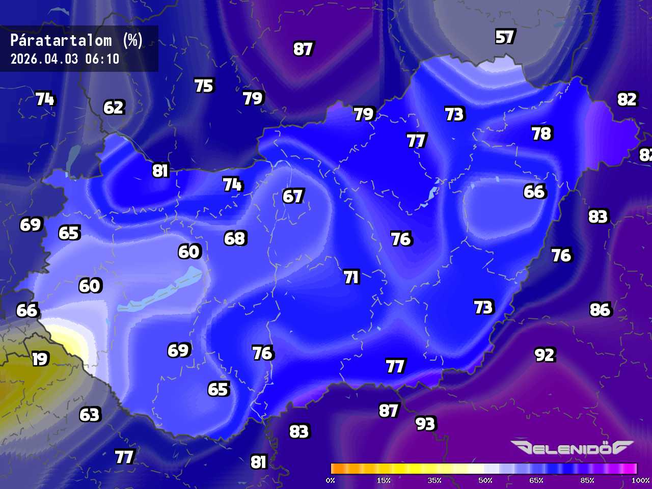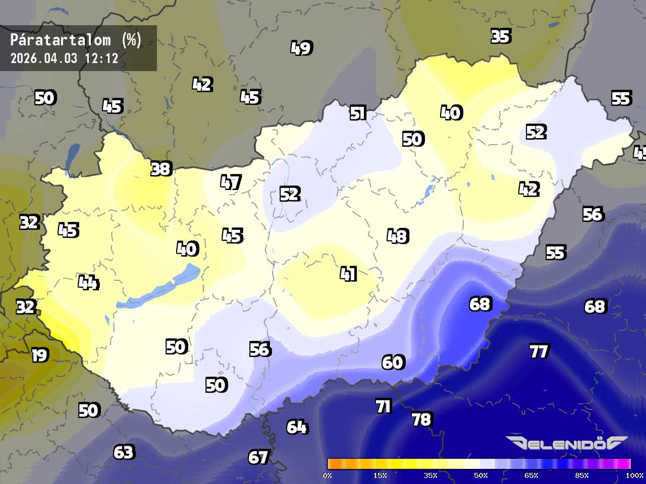 A páratartalom térkép a levegőben úszó vízrészecskék százalékos súlyát mutatja adott súlyú levegőhöz képest. Minél nagyobb ez a százalék érték, annál párásabb a levegő, annál nehezebben párologtat az emberi test, így nyáron kellemetlenül érezzük magunkat. Télen a magas páratartalom könnyebben elvezeti a testhőt. Csapadékos területeken megnő a páratartalom.