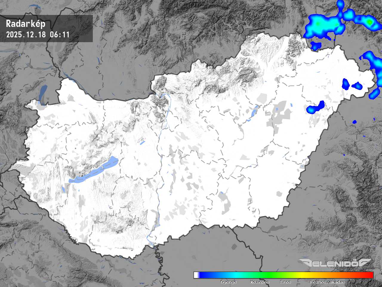 A radarkép a horvat [vrijeme.hr] román [inmh.ro] szlovák [shmu.sk] radarhálózat közös magyarországi részeinek aggregációjából az közzétevők beleegyezésével készült. A nagyobb pontosság érdekében csak a közösen látott jelenségek jelennek meg a térképen.