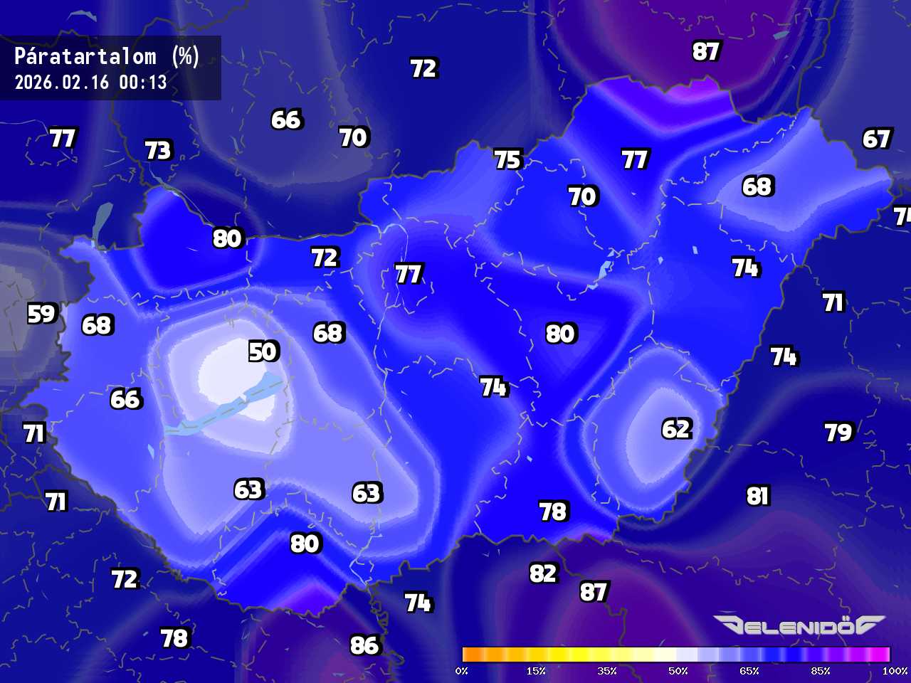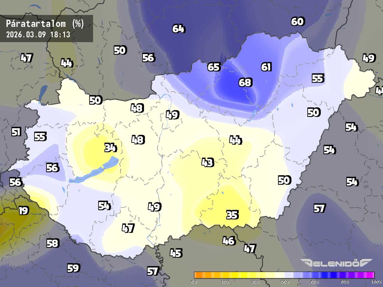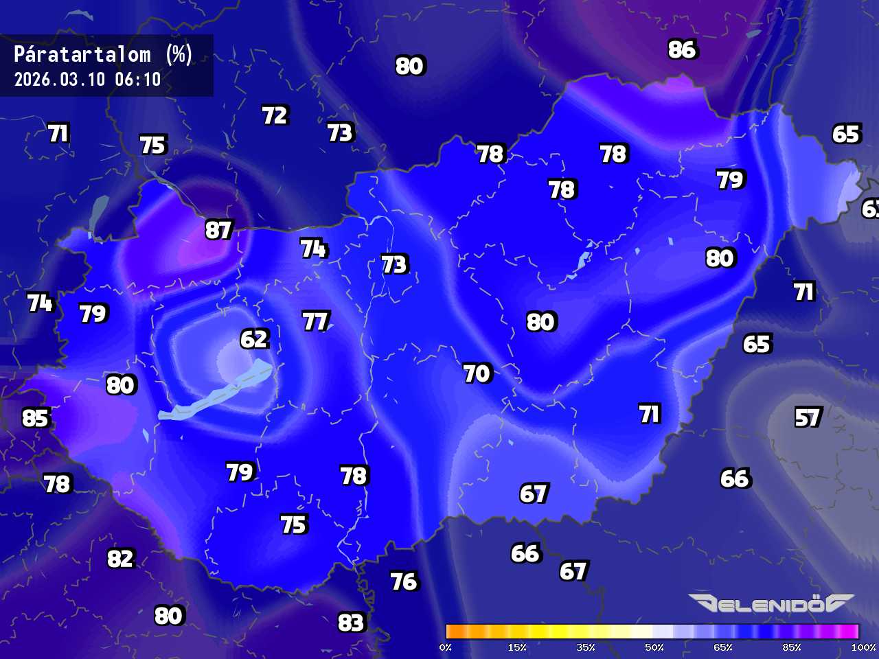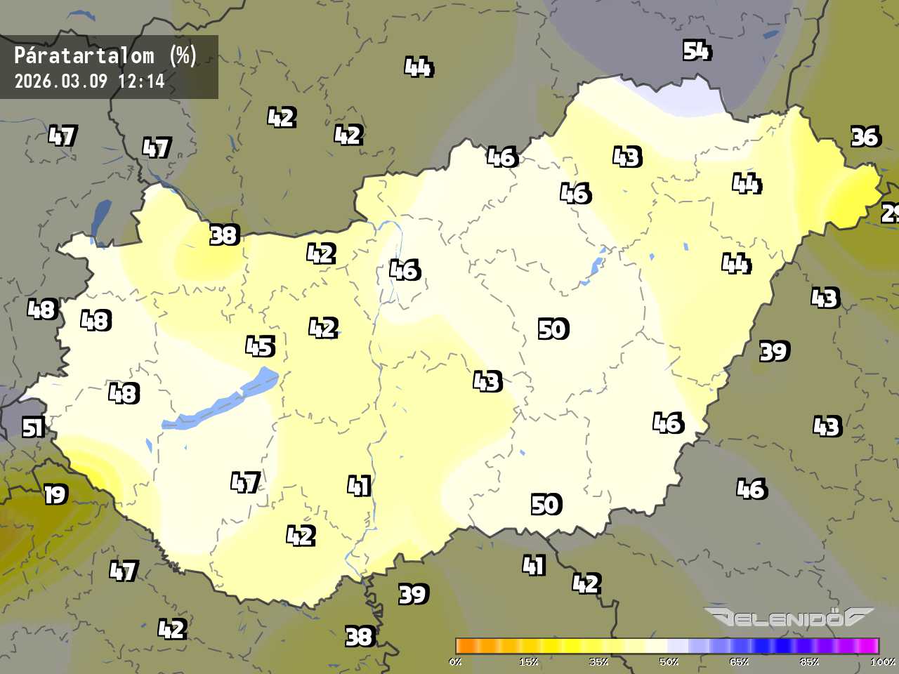 A páratartalom térkép a levegőben úszó vízrészecskék százalékos súlyát mutatja adott súlyú levegőhöz képest. Minél nagyobb ez a százalék érték, annál párásabb a levegő, annál nehezebben párologtat az emberi test, így nyáron kellemetlenül érezzük magunkat. Télen a magas páratartalom könnyebben elvezeti a testhőt. Csapadékos területeken megnő a páratartalom.