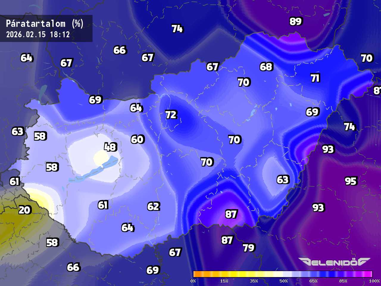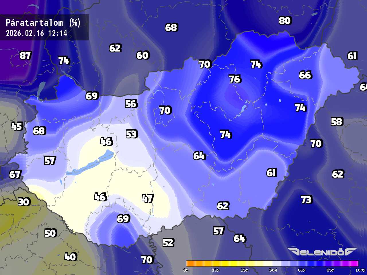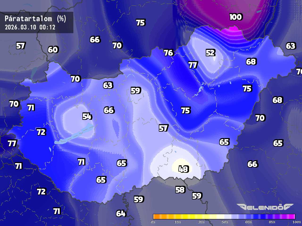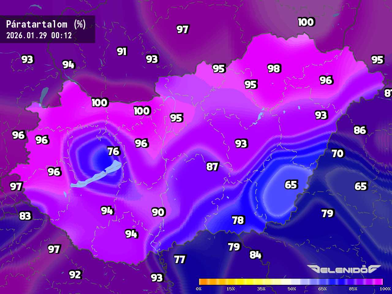 A páratartalom térkép a levegőben úszó vízrészecskék százalékos súlyát mutatja adott súlyú levegőhöz képest. Minél nagyobb ez a százalék érték, annál párásabb a levegő, annál nehezebben párologtat az emberi test, így nyáron kellemetlenül érezzük magunkat. Télen a magas páratartalom könnyebben elvezeti a testhőt. Csapadékos területeken megnő a páratartalom.
