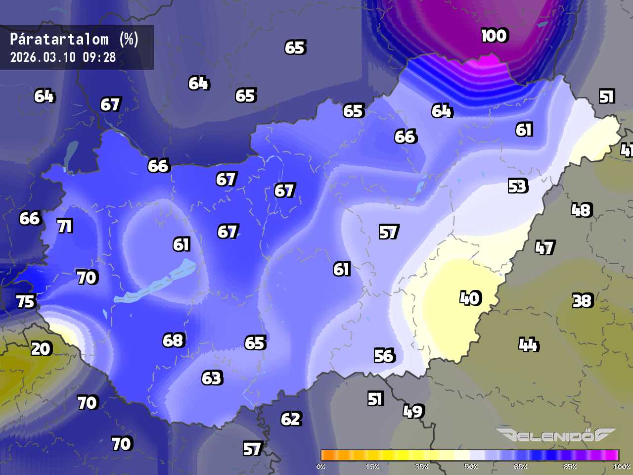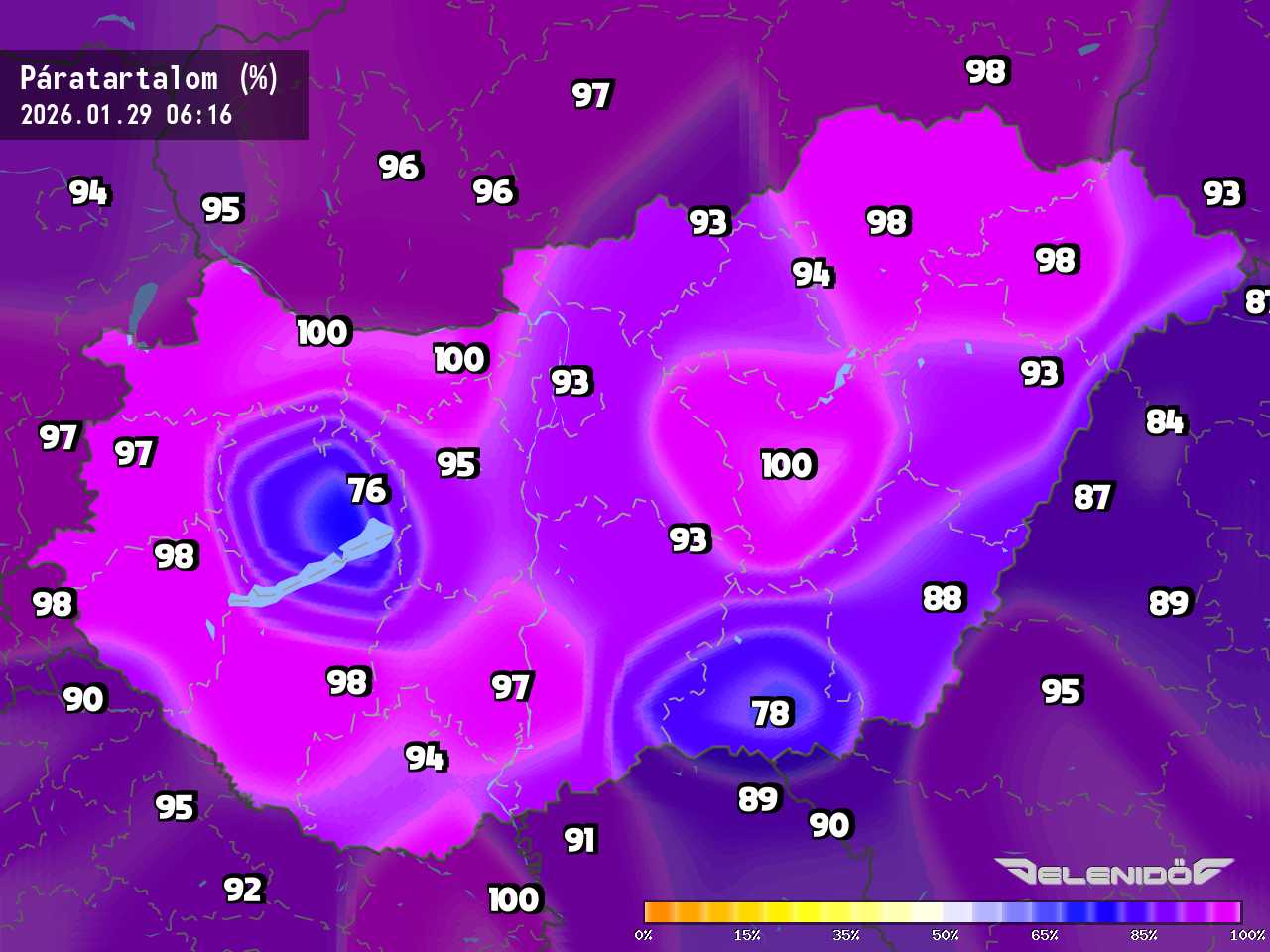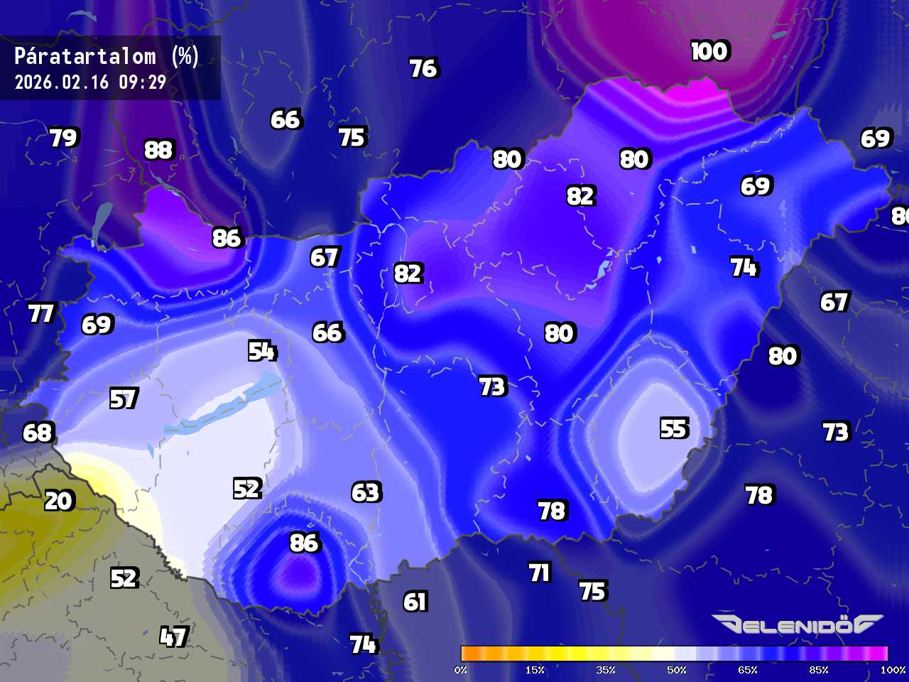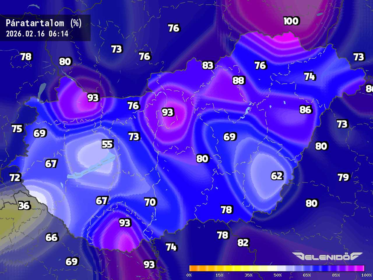 A páratartalom térkép a levegőben úszó vízrészecskék százalékos súlyát mutatja adott súlyú levegőhöz képest. Minél nagyobb ez a százalék érték, annál párásabb a levegő, annál nehezebben párologtat az emberi test, így nyáron kellemetlenül érezzük magunkat. Télen a magas páratartalom könnyebben elvezeti a testhőt. Csapadékos területeken megnő a páratartalom.