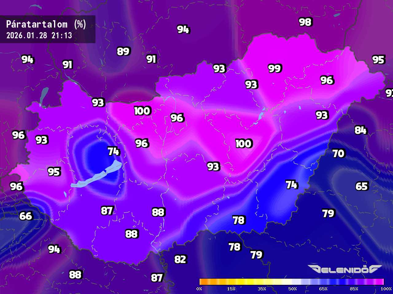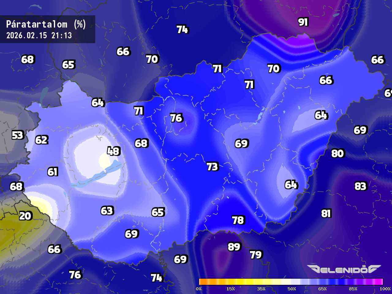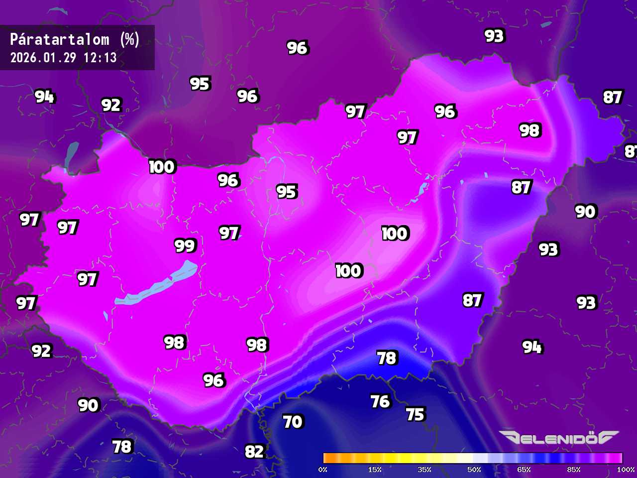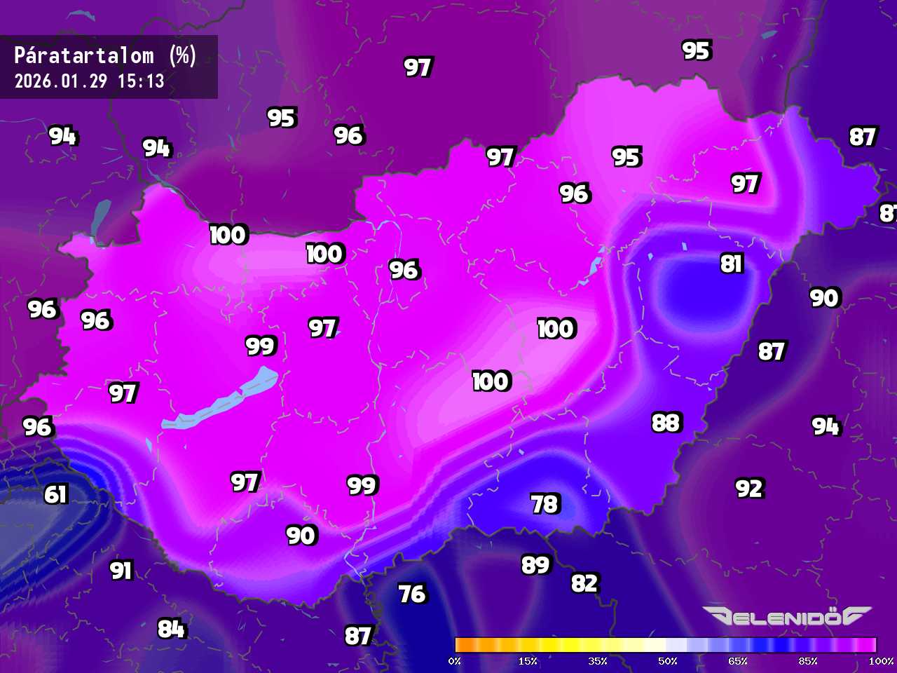 A páratartalom térkép a levegőben úszó vízrészecskék százalékos súlyát mutatja adott súlyú levegőhöz képest. Minél nagyobb ez a százalék érték, annál párásabb a levegő, annál nehezebben párologtat az emberi test, így nyáron kellemetlenül érezzük magunkat. Télen a magas páratartalom könnyebben elvezeti a testhőt. Csapadékos területeken megnő a páratartalom.